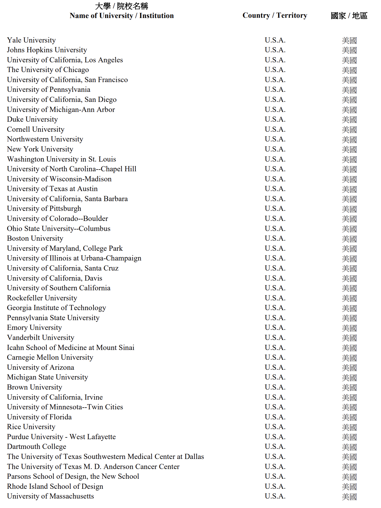 完整合資格院校名單