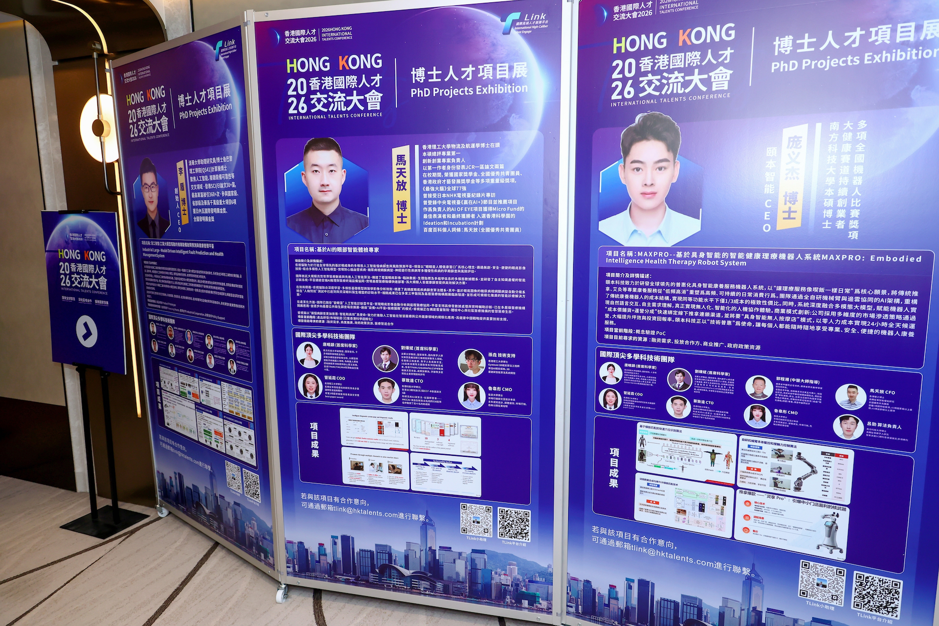 參展項目包括來自香港大學、清華大學、倫敦帝國理工學院等頂尖學府的創新成果,如「GIBOTAI AI機器人」、「基於AI的眼部智能體檢專家」、「柔協科技軟體線驅動靈巧手」、「自動化工業設計幾何處理引擎Geo Engine」等。博士人才項目展現場吸引不少人才前來詢問,對接融資需求、產業合作、技術資源、招募團隊等。